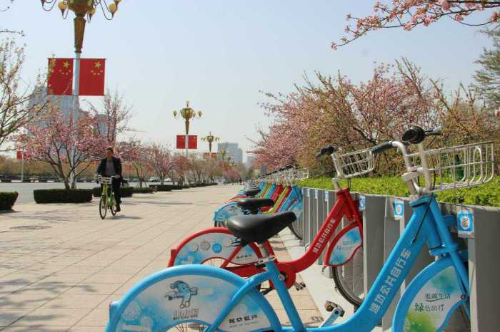 隨著氣溫的回升,街頭騎行公共自行車的人們越來越多,穿梭于濰坊的大街小巷,少開一天車,多騎自行車,讓濰坊的天更藍,水更清,空氣更清新已經成為一種社會共識。隨處可見的公共自行車站點與眾多騎行的市民形成了一副和諧的流動畫卷,融于濰坊的春天里,增添了這座城市的活力。